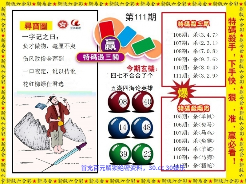 111期 | 4头单 | 红单 | 06合 | 马12 |